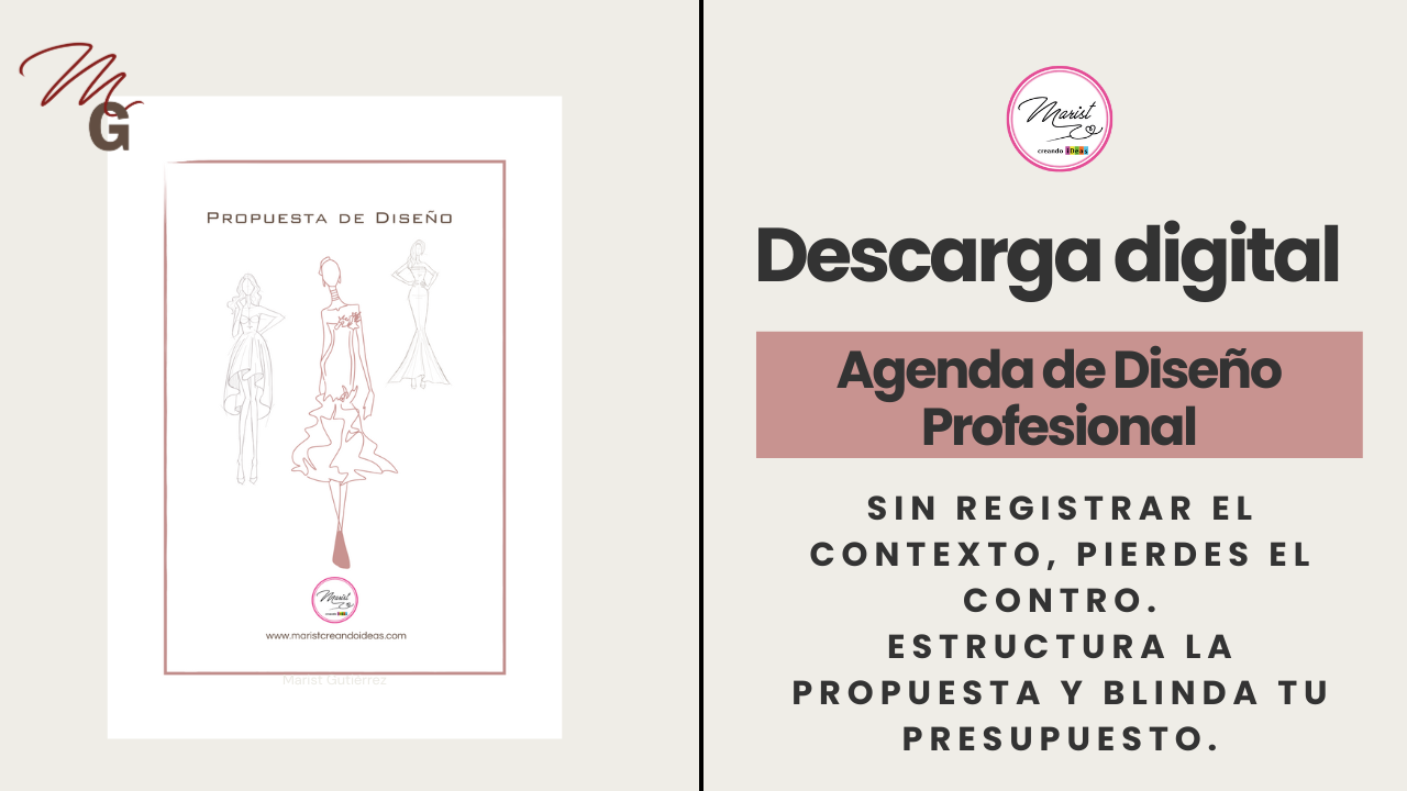 Cada diseño de éxito comienza con una conversación organizada. Si eres diseñadora, modista o estudiante, tu primer encuentro con la clienta no puede ser improvisado. Necesitas una guía que garantice que no olvides registrar ningún detalle vital. Esta Agenda de Diseño descargable es la herramienta que te da autoridad profesional. Ha sido creada por la especialista Márist Gutiérrez para ayudarte a registrar, organizar y planificar toda la información clave, desde los datos de contacto hasta el presupuesto estimado y la fecha límite, sentando las bases de un proyecto claro, creativo y alineado con las expectativas de tu clienta.